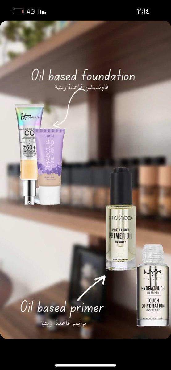 إختصار الموضوع: 3 اشياء لازم تشوفين تركيبتها، الفاونديشن و المرطب و البرامير و الكونسيلر بعد،
