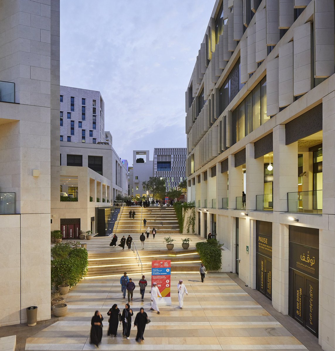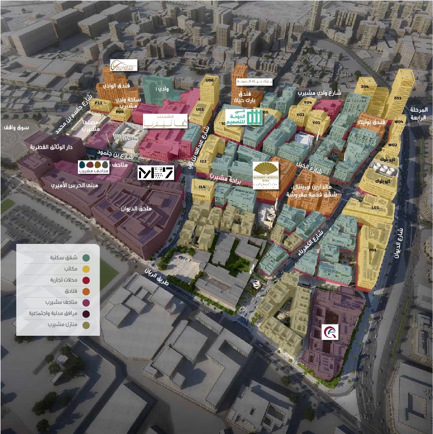 مشروع مشيرب في الدوحة قدم نموذج جميل للنسيج التقليدي المحدث والي كلنا ننادي فيه باستمرار، بحيث يوفر عدة غايات واهداف عمرانية بوقت واحد ؛ الكثافة والتقارب و الاتصالية والتنوع وخاصة الحماية من اشعاع الشمس المباشر بتوظيف النسيج المبني.