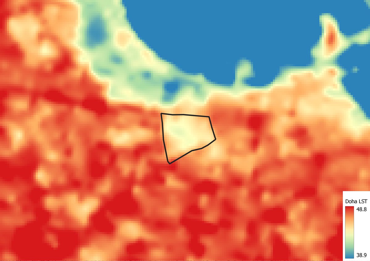 اما مشيرب حقق 5~6 درجات تبريد، وطبعاً هذا بسبب محدودية الصور الجوية في قراءة تجربة الراحة الحرارية للمشاة، لكن كلهم افضل من غيرهم