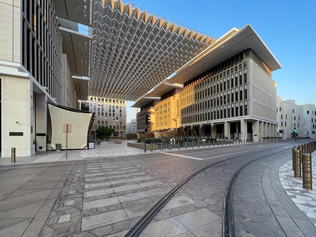 جادة بمشروع مشيرب في الدوحة، تظهر فيها مشاركة النقل العام (ترام خفيف) لمشاة بشكل حضاري وانيق ومافيه ضجيج والمشاكل الي يتوهمها جيل السبعينات من مهندسين النقل الذين تلقوا تعليمهم في الولايات المتحدة وحفظوا اكوادهم المثيرة للشفقة.