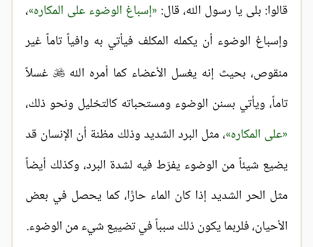 حديث أبي هريرة قال ، أن النبي ﷺ قال: ألا أدلكم على ما يمحو الله به الخطايا ويرفع به الدرجات؟، قالوا بلى يا رسول الله، قال إسباغ الوضوء على المكاره، وكثرة الخطى إلى المساجد، وانتظار الصلاة بعد الصلاة، فذلكم الرباط[1]، رواه مسلم.