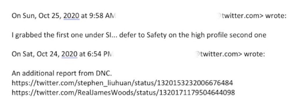 تظهر ملفات تويتر أن تويتر كان يفرض رقابة على المستخدم بناءً على الطلبات المباشرة من فريق بايدن في أكتوبر 2020 .