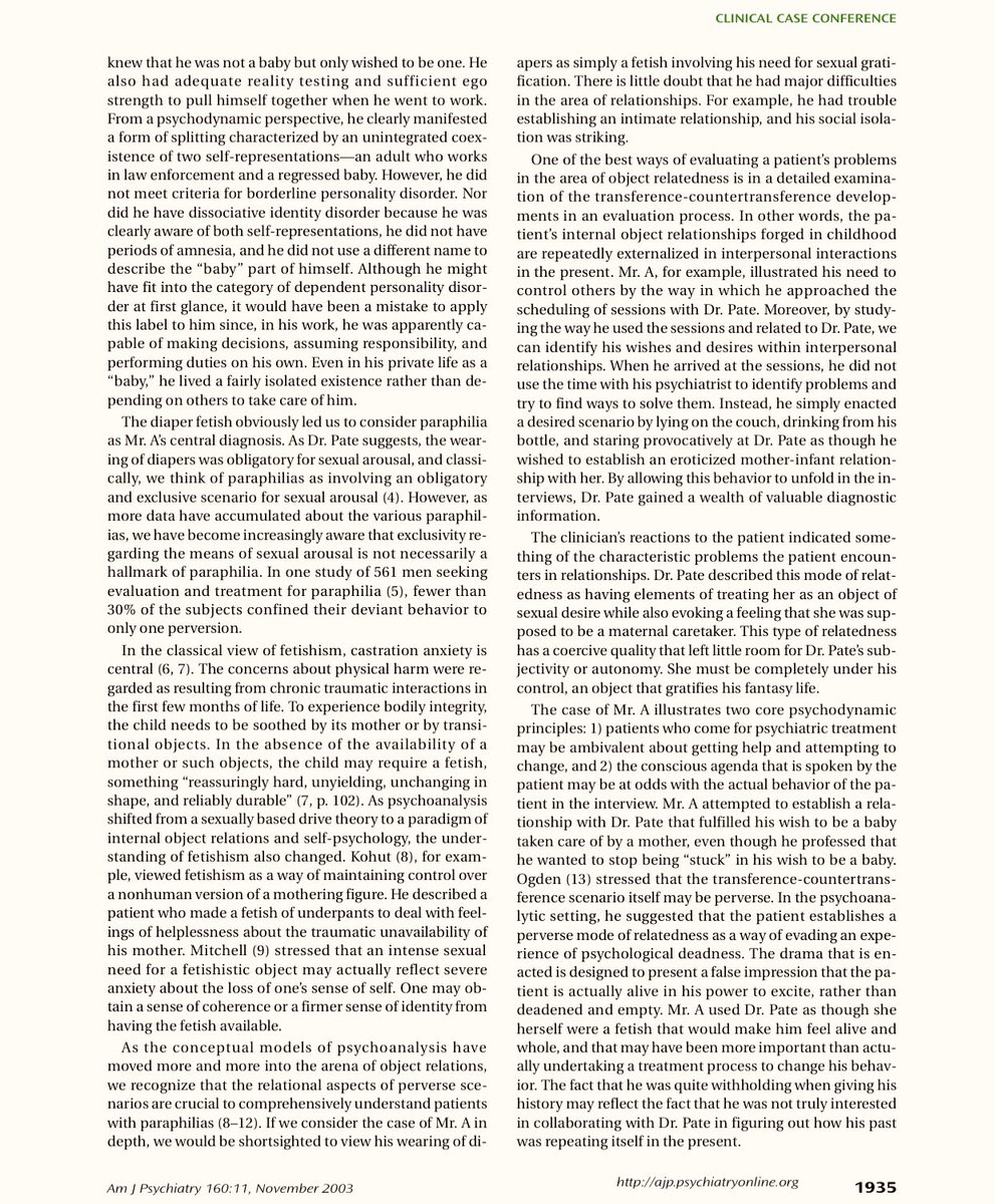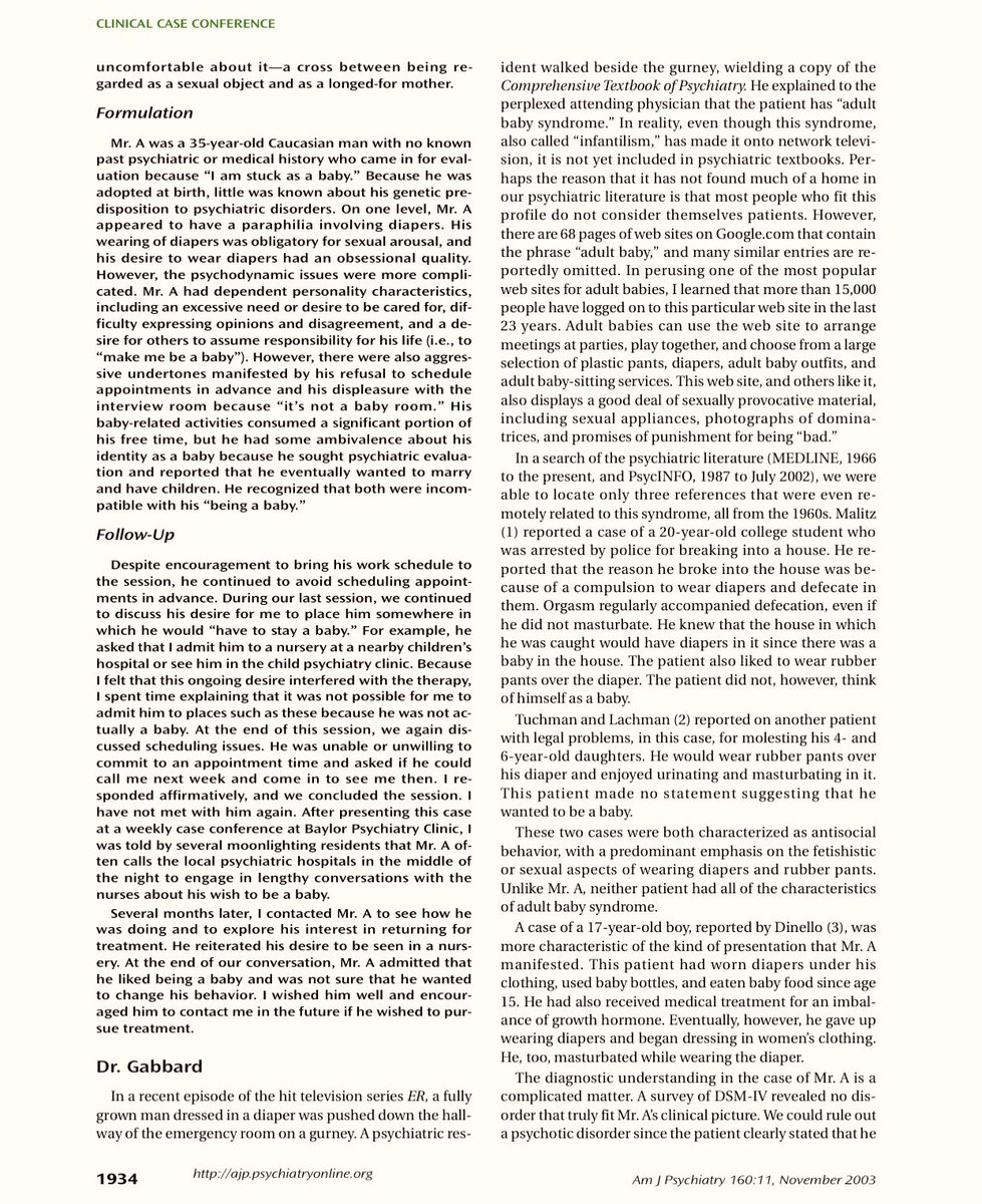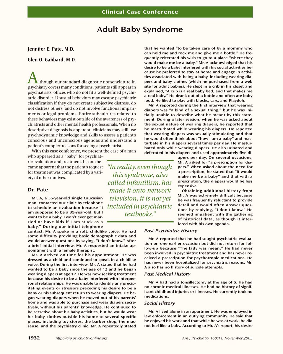 و هي ان الشخص لا يتقبل بأنه صار بالغ، و يتمنى يبقى طفل، فيستمر بإرتداء الحفاضة و يشرب من الرضاعة و ينام في سرير الاطفال و يلعب كالأطفال