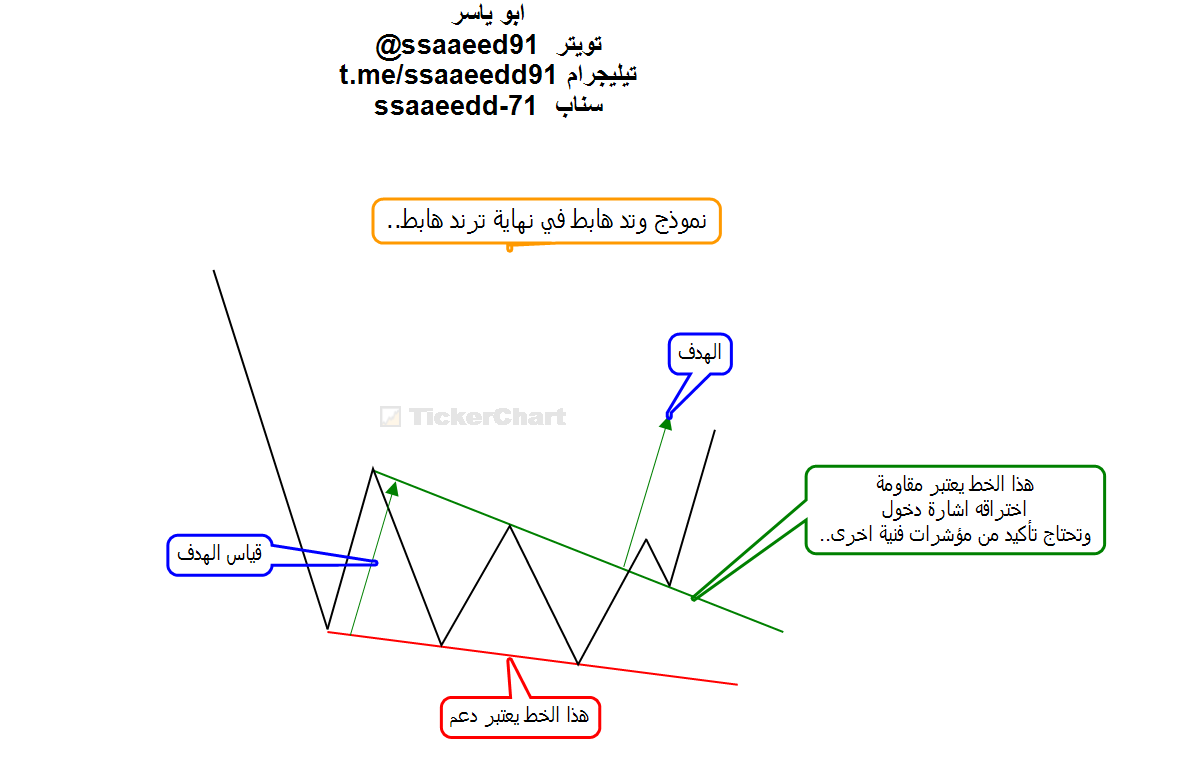 اذا تكون وتد صاعد في اتجاه هابط يكون مكمل للاتجاه..