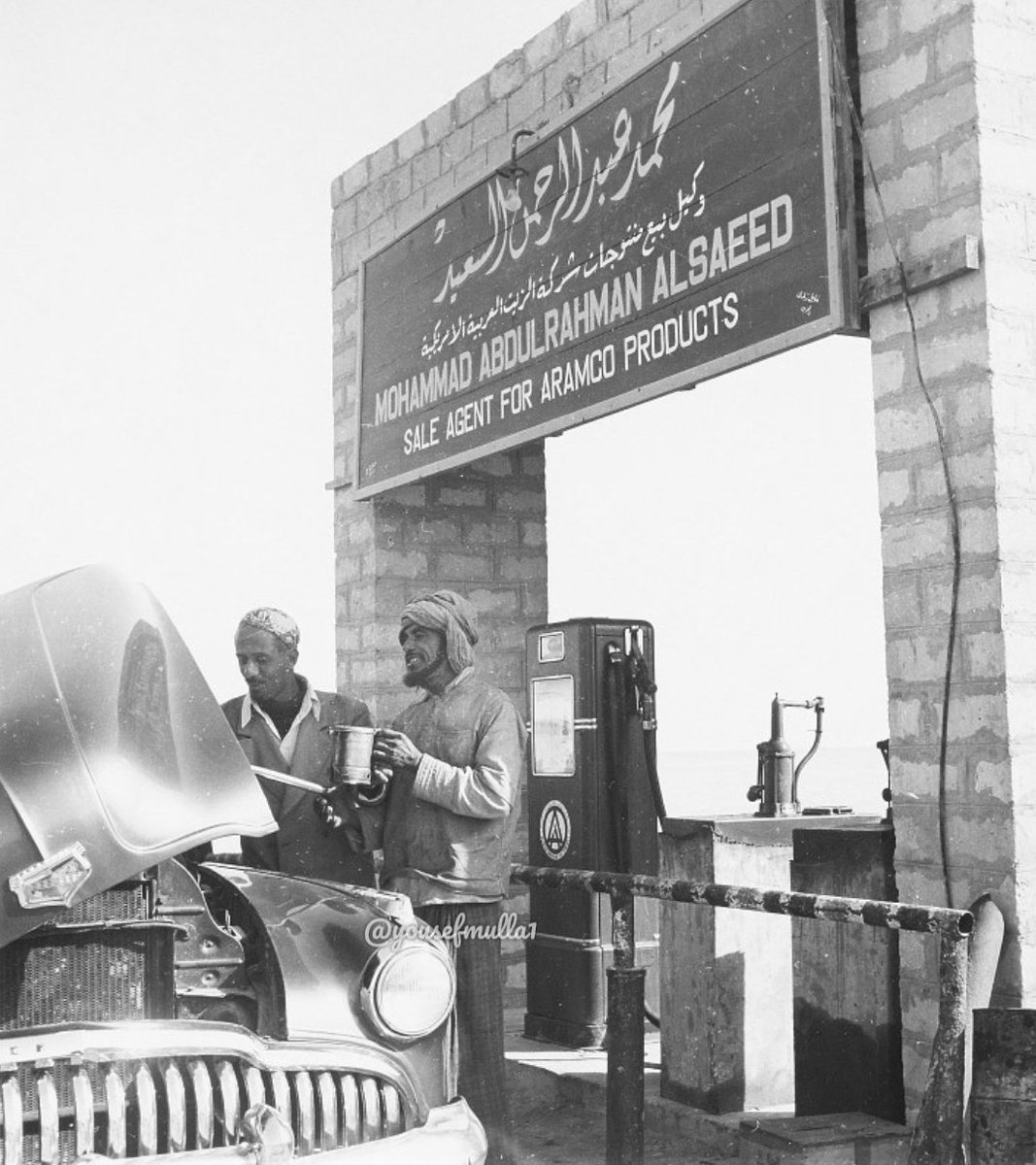 13》محطة خدمة حديثة في الخبر، طورها عبد الرحمن السعيد بمساعدة قسم التنمية الصناعية العربية في شركة #ارامكو، عام 1951م.