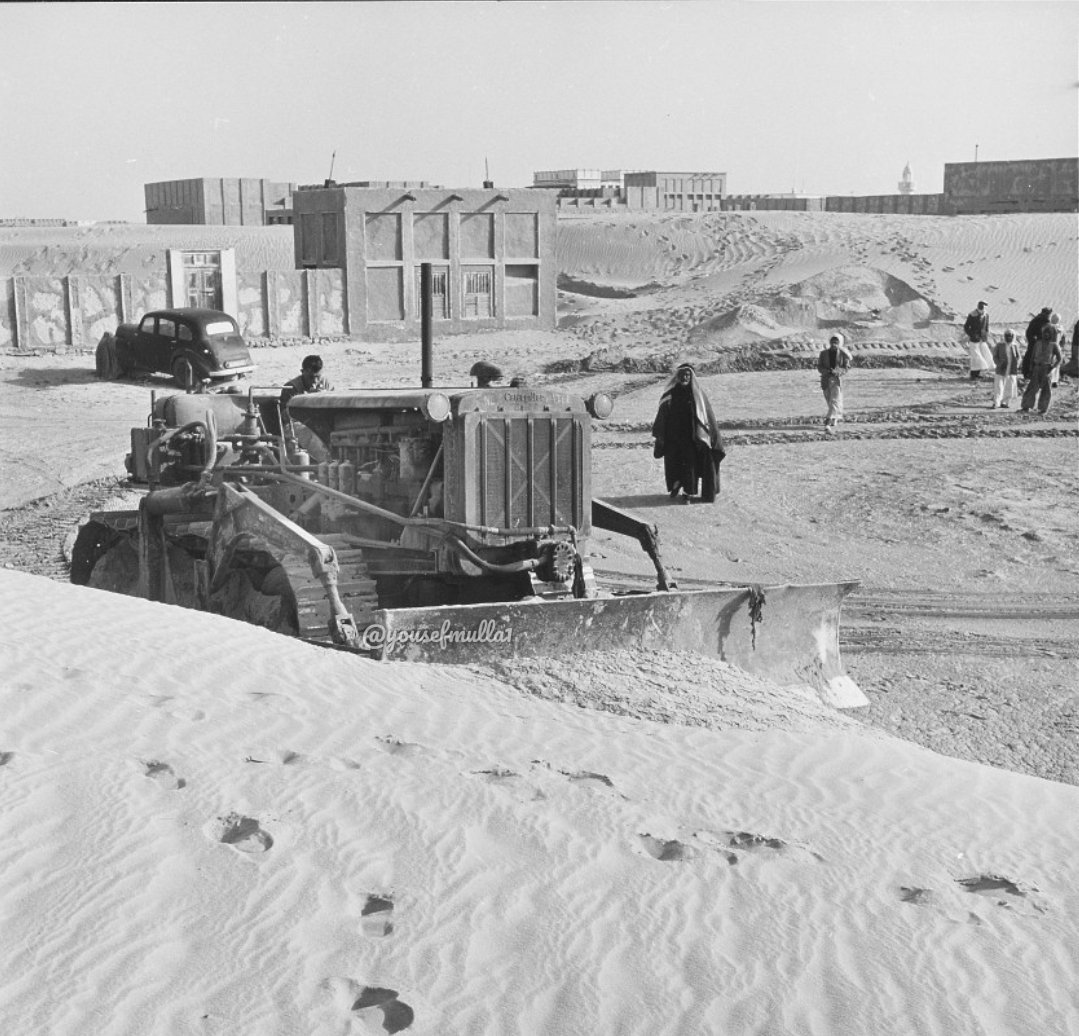 14》في عام 1950م، اشترى مواطنو الخبر هذه المعدات لتحريك التربة بناءً على نصيحة قسم التنمية الصناعية العربية التابع لشركة #ارامكو لإزالة الشوارع المسدودة بالرمال والمناطق السكنية في مدينتهم.