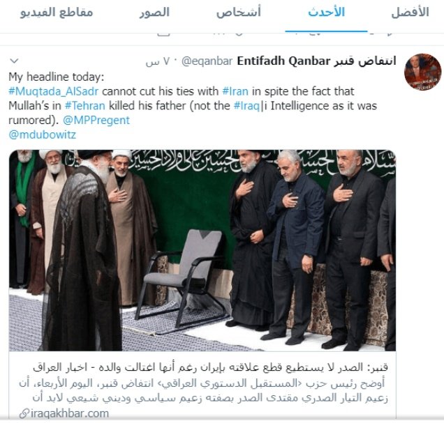 وذكّرت بأن الصحافة نشرت ما مضمونه أن ” مقتدى في ذلك الوقت اتهم السيد محمد باقر الحكيم شقيق عبد العزيز الحكيم بقتل والده ، وفي مجلس عزاء بإيران ذهب إليه باقر الحكيم فضربوه بالاحذية وطردوه وقد نشرت هذه الحادثة آنذاك صحف عديدة ومجلات مثل مجلة الشراع اللبنانية”.