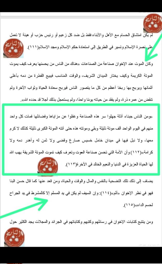 ↩️وكان الموت عند الإخوان صناعة من الصناعات والوقت المناسب فيبيع القطرة من دمه بأغلى أثمانها ويربح بها ربحا أعظم