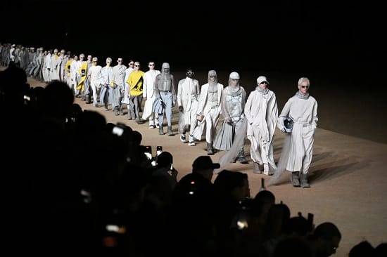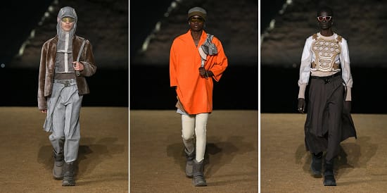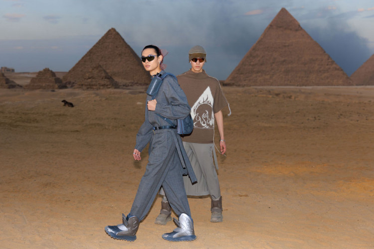 أضاء عرض ديور الأعجوبة التاريخية للأهرامات العظيمة بأشعة الليزر ونقلها إلى المستقبل كخلفية لا تقدر بثمن لإبداعاته.