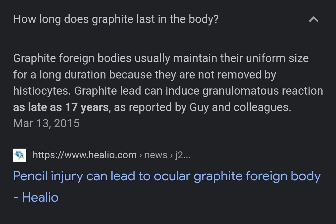 كم من الوقت يمكن للجرافيت أن يبقى في الجسم؟