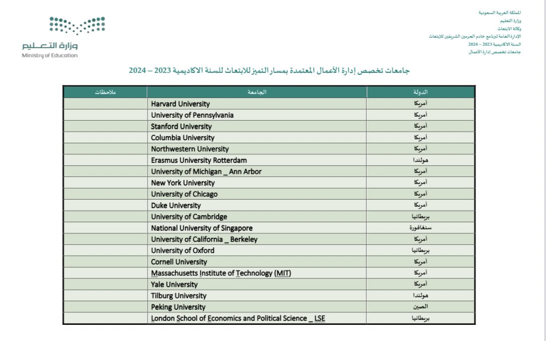 تخصصات ابتعاث التميز الجديد 21 تخصص