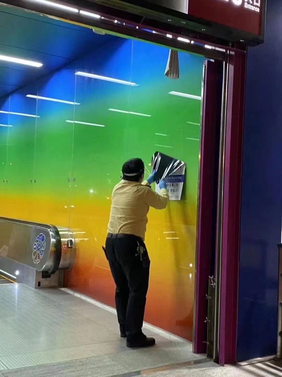 中国大城市基本放开后这几天的景象:杭州、广州等地的地铁出入口不再查健康码,此前与健康码、场所码相关的海报被撕掉。/1