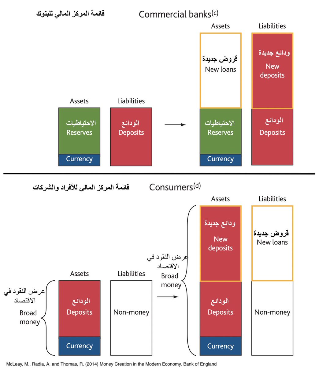 8⃣ كيف تحدث مشكلة في السيولة والودائع البنكية تجاوزت ال 2 تريليون ريال؟الودائع البنكية حقيقتها ديون على البنوك التجارية وتُقيد كمطلوبات على البنك, ولايستطيع البنك تحويلها إلى بنك آخر بدون تحويل مايقابلها من 🔴الإحتياطيات حتى لايفلس البنك الآخر. وهنا يظهر الظغط على السيولة
