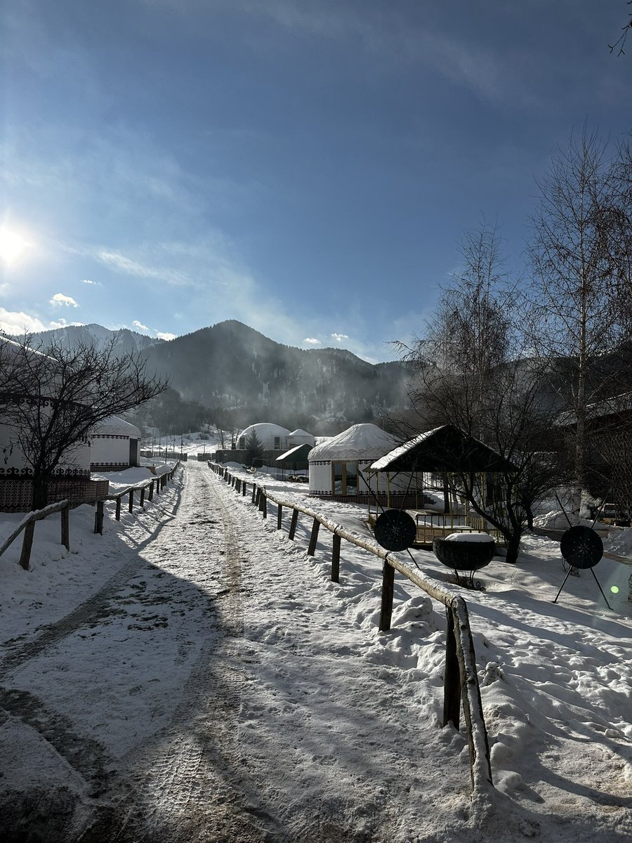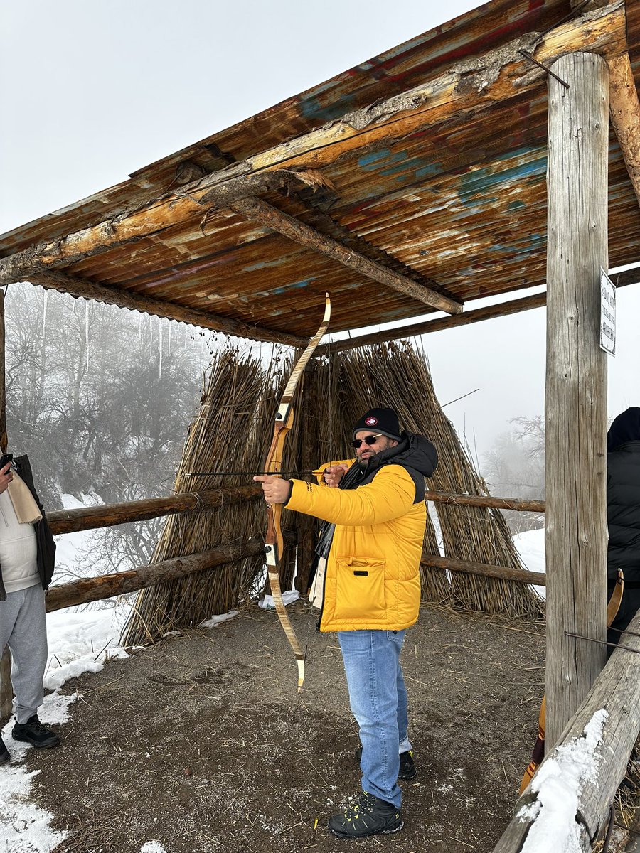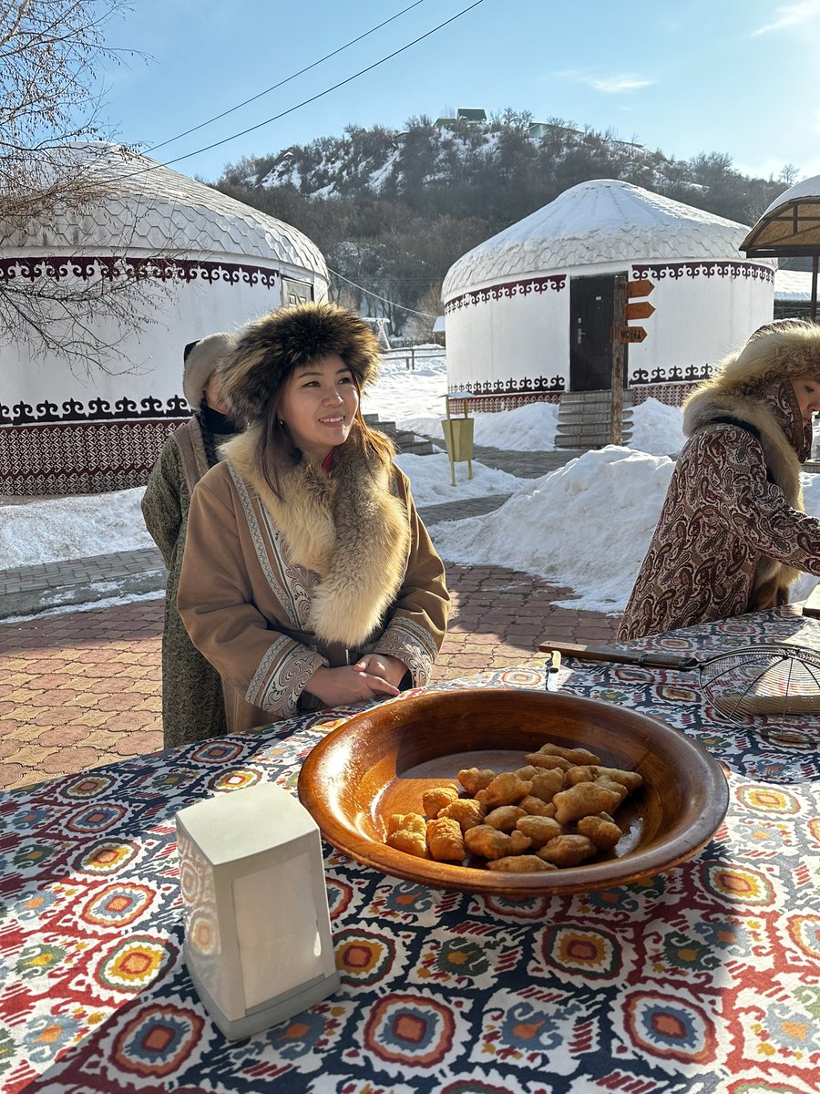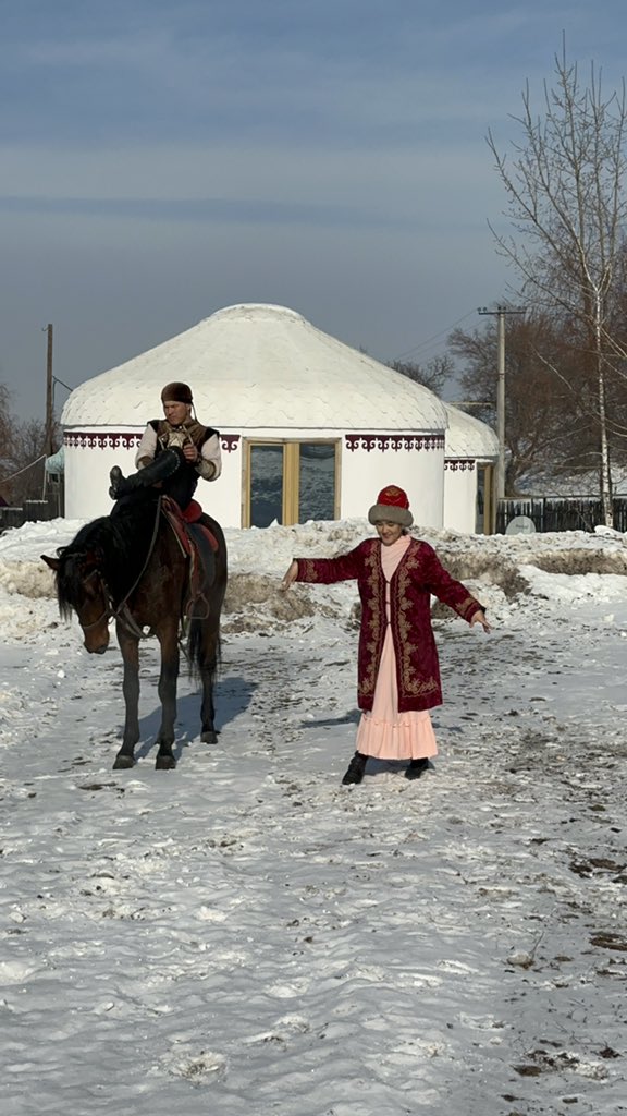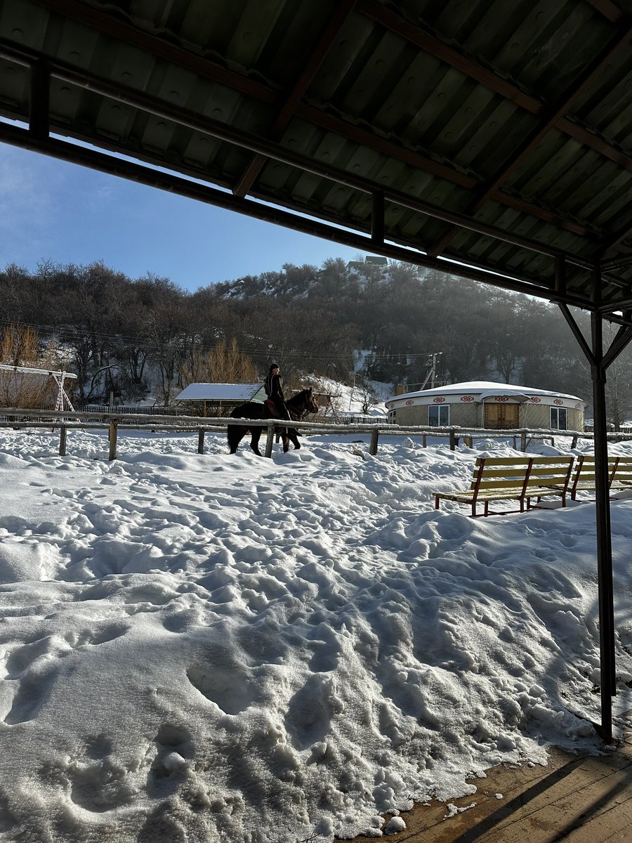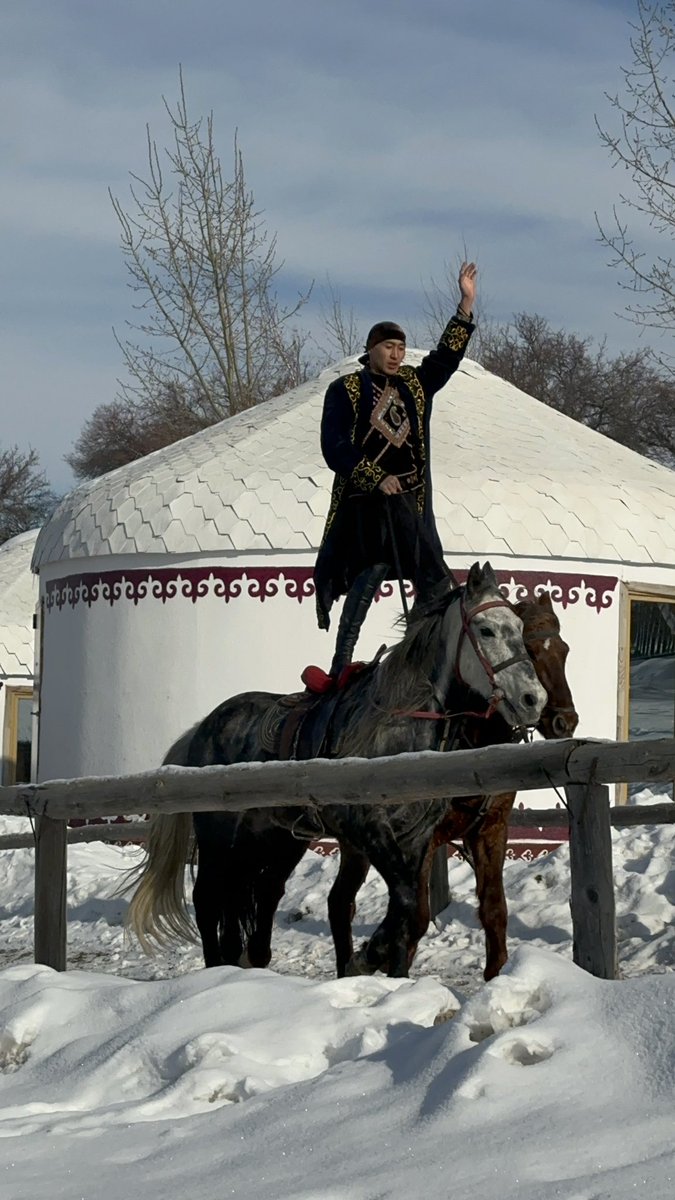 من النشاطات العائلية خارج ألماتي - الذهاب لمزرعة لاقامة عروض تقليدية - ركوب الخيل - والطبخ والرماية وركوب الخيل. وبالامكان ايضا المبيت في الغرف هناك - شيء رائع وتجربة مميزة - الشخص بتقريبا ١٦٠ درهم شامل الغداء