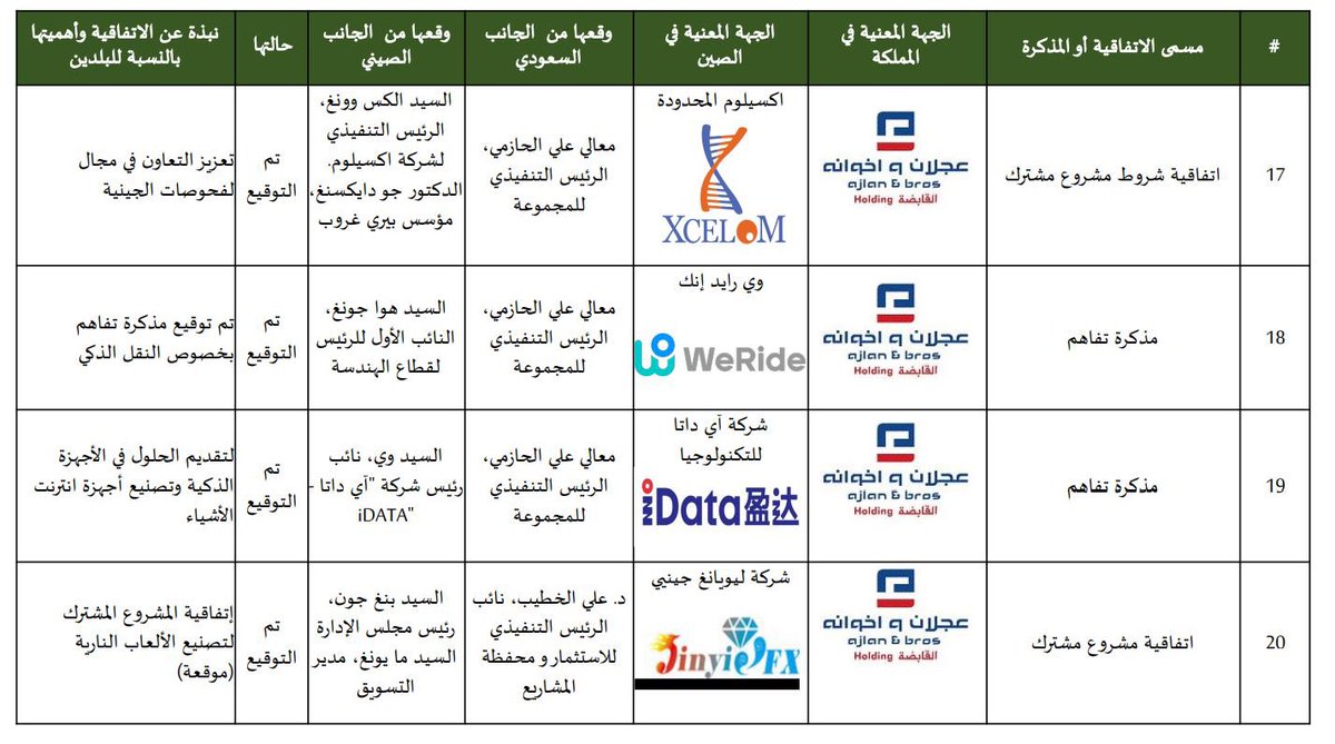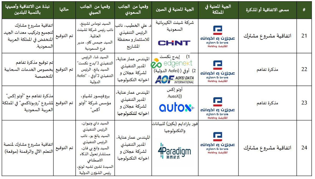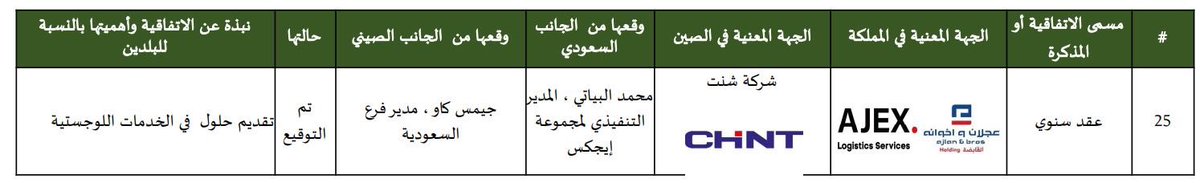 التغريدة الاخيرة الاتفاقات بين الجهات الحكومية و الجهات الصينية والشركات 🇸🇦🇨🇳 :