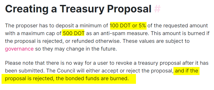 * لتقديم اقتراحات إلى مجتمع المشروع للتصويت عليها يجب إيداع 100 عملة #DOT بحد أدنى و 500 عملة بحد أقصى.