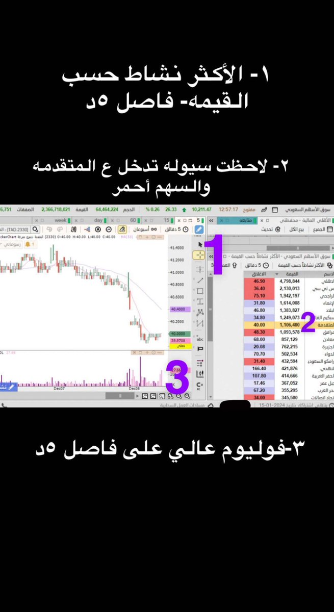 -مو أي سهم يظهر في الأكثر نشاط -حسب القيمه- يعني إيجابي، لابد يكون عندك خلفيه عن التشارت اليومي.