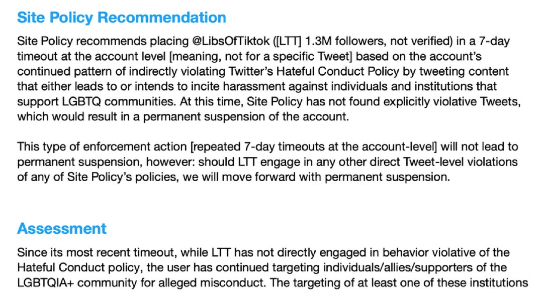 ذكر موظف آخر في تويتر: " ان فيه حساب متابعينه كثير ، مثير للجدل" وضع في القائمة السوداء "ولن يكون هناك تذكرة أو أي شيء" الا بالرجوع للتنفيذيين على مستوى عالي بشركه تويتر.