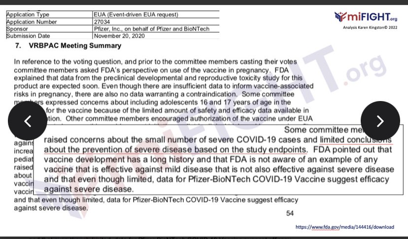علمت إدارة الغذاء والدواء أن لقاحات الرنا المرسال من شركة فايزر ستؤذي الأطفال وتؤذيهم بشكل دائم. بعد هذا الاجتماع مباشرة ، كان ينبغي على إدارة الغذاء والدواء الأمريكية إيقاف جميع التجارب ، وخاصة التجارب الخاصة بالأطفال. كان السماح لتجارب طب الأطفال بالمضي قدمًا عملاً إجراميًا