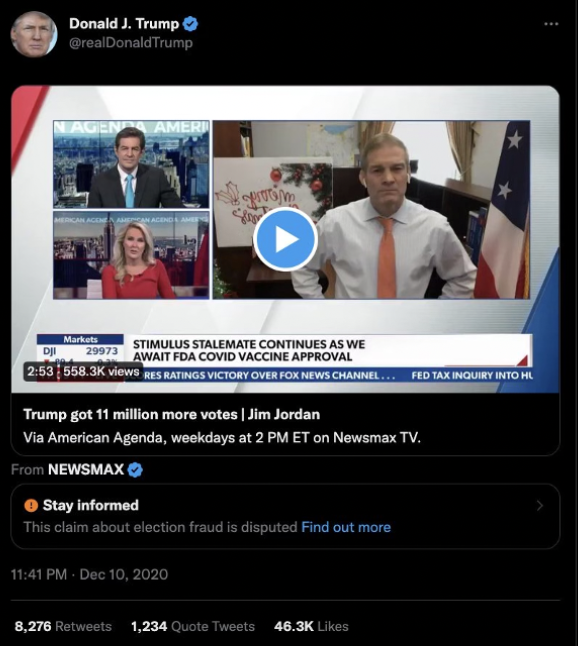 14 - وفي نفس الوقت، انتشرت عدة تغريدات من مؤيدي حملة بايدن الانتخابية تتهم الجمهوريين بسرقة الانتخابات. وحتى أنهم استخدموا هاشتاغ #StealOurVotes "سرقوا أصواتنا"