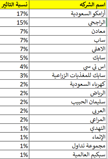 ومابي اعقد الموضوع. السعودية نستخدم مؤشر تاسي و مبني على القيمة السوقية.