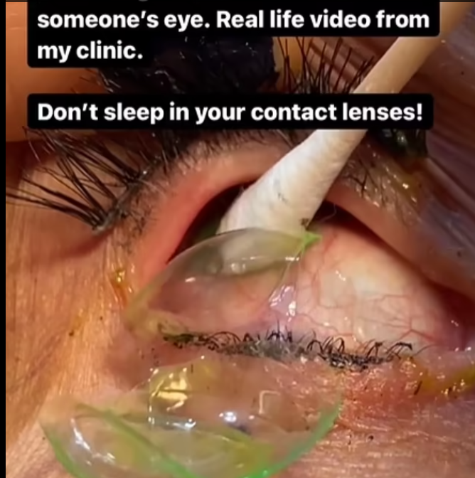 يمكن أن تسبب العدسات اللاصقة سحجات صغيرة في العين ، مما يسهل على الأميبا الالتصاق عندما تتلامس العين مع الماء.