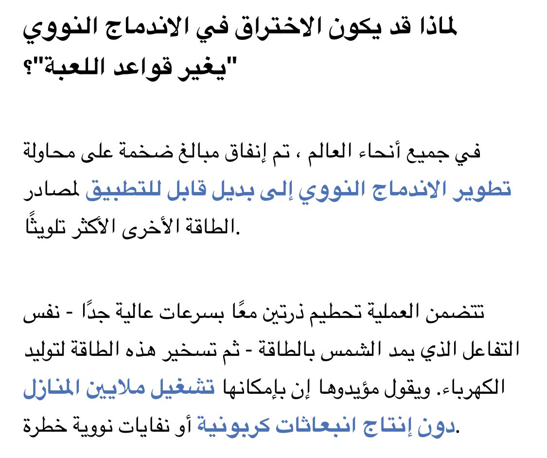 الهدف هو إنتاج طاقة نظيفة رخيصة وغير محدودة وبدون نفايات مشعة تم إجراء التجربة بمختبر في كاليفورنيا
