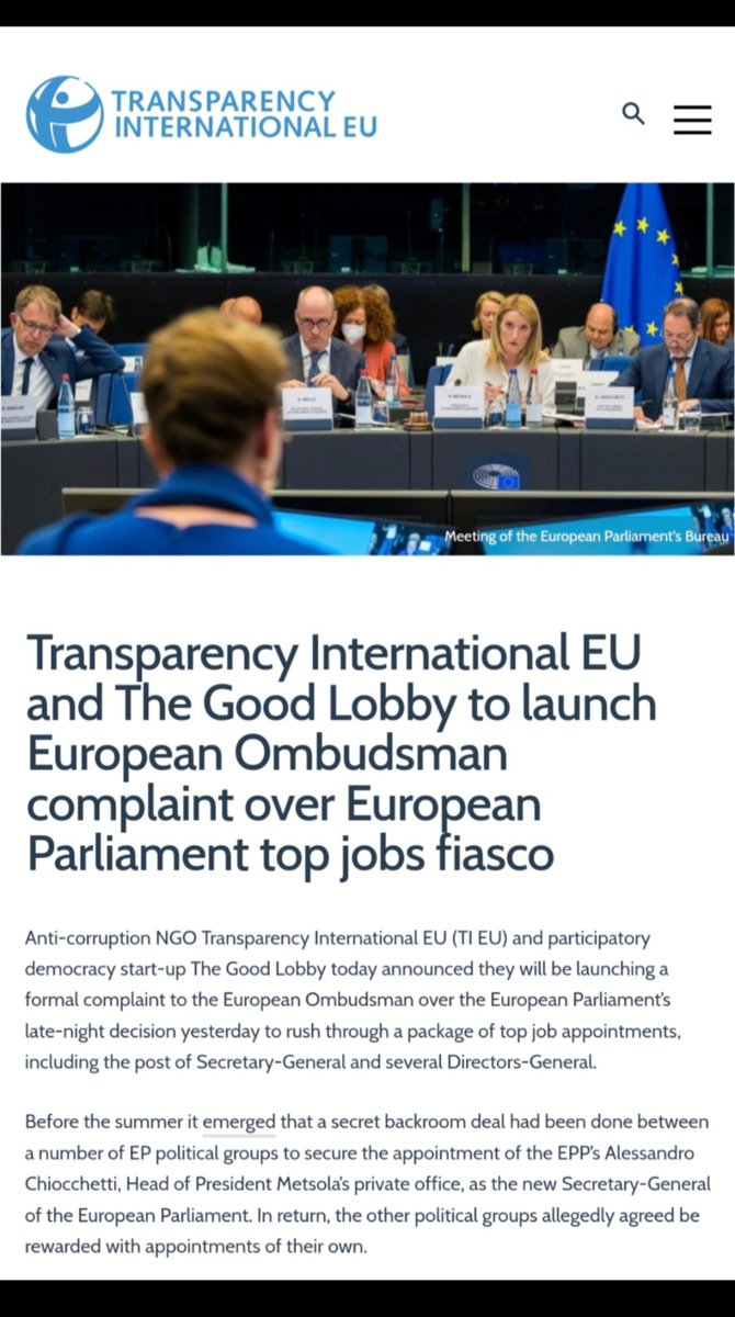 حول اطلاق شكوى رسمية لمكافحة الفساد بشأن قرار البرلمان الأوروبي الذي صدر في وقت متأخر من الليل أمس لتسريع تنفيذ تعيينات عدد من وظائف العليا، بما فيها منصب الأمين العام وعدد من المديرين العامين.