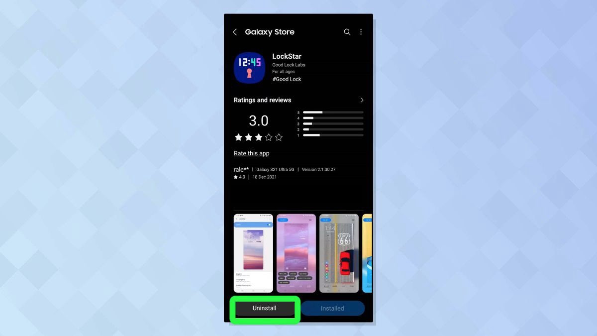 إذا كنت ترغب في إلغاء تثبيت مكون إضافي (Plugin) من تطبيق Good Lock، فما عليك سوى فتح Good Lock والنقر على أيقونة Galaxy Store بجوار المكون الإضافي.