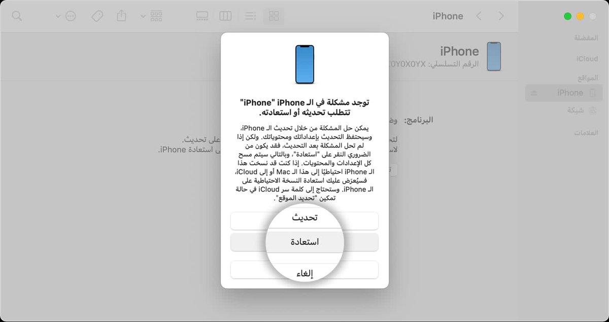 إذا تعذر عليك جعل iPhone يُظهر شاشة نمط الاسترداد واحتجت إلى المساعدة، فاتصل بدعم Apple.