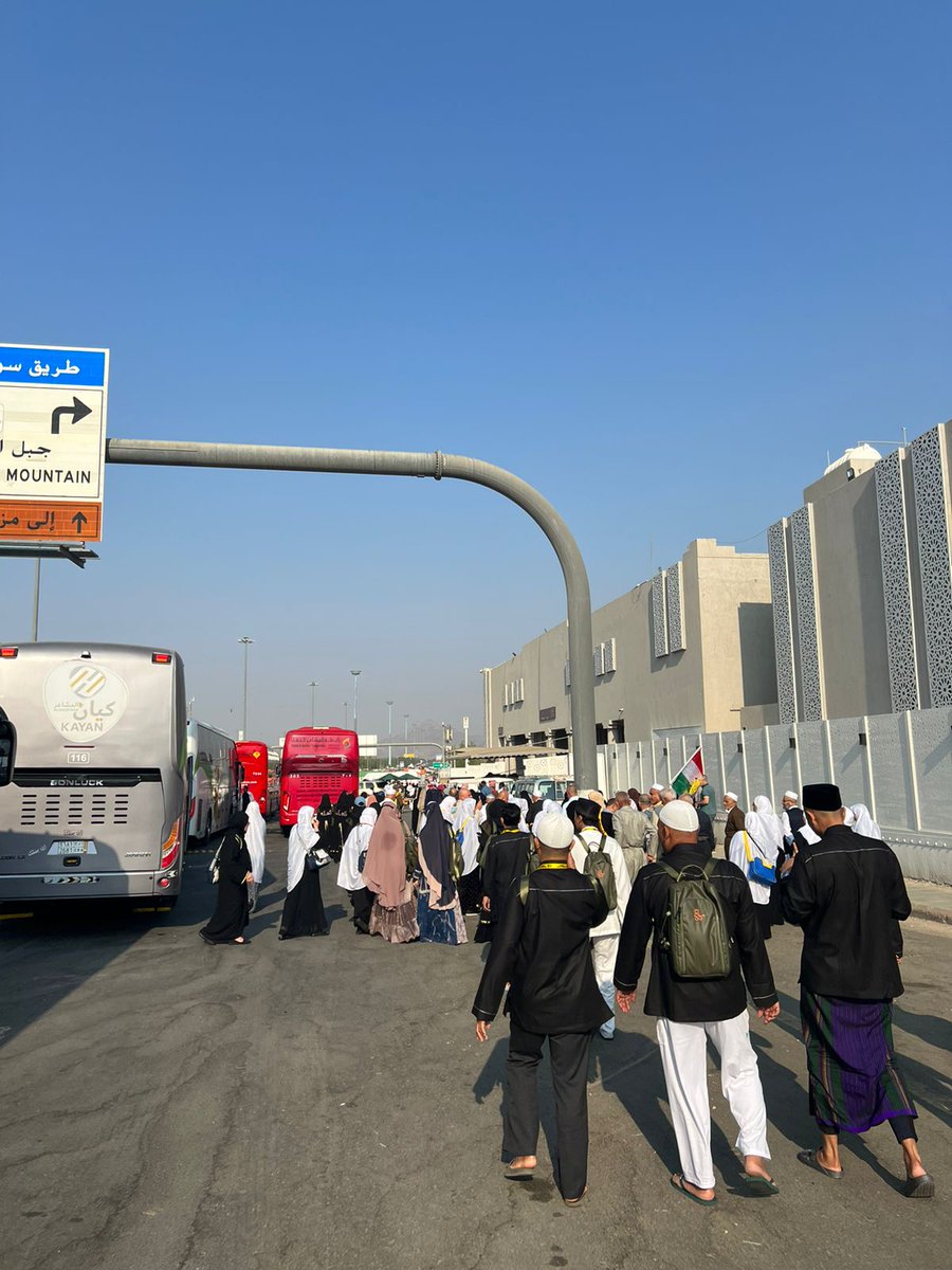 تصطف الحافلات بشكل طولي حسب أوامر رجال المرور ، حيث للوهلة الأولى يشعر المتابع عن كثب بأنه في اليوم التاسع من #ذو_الحجة