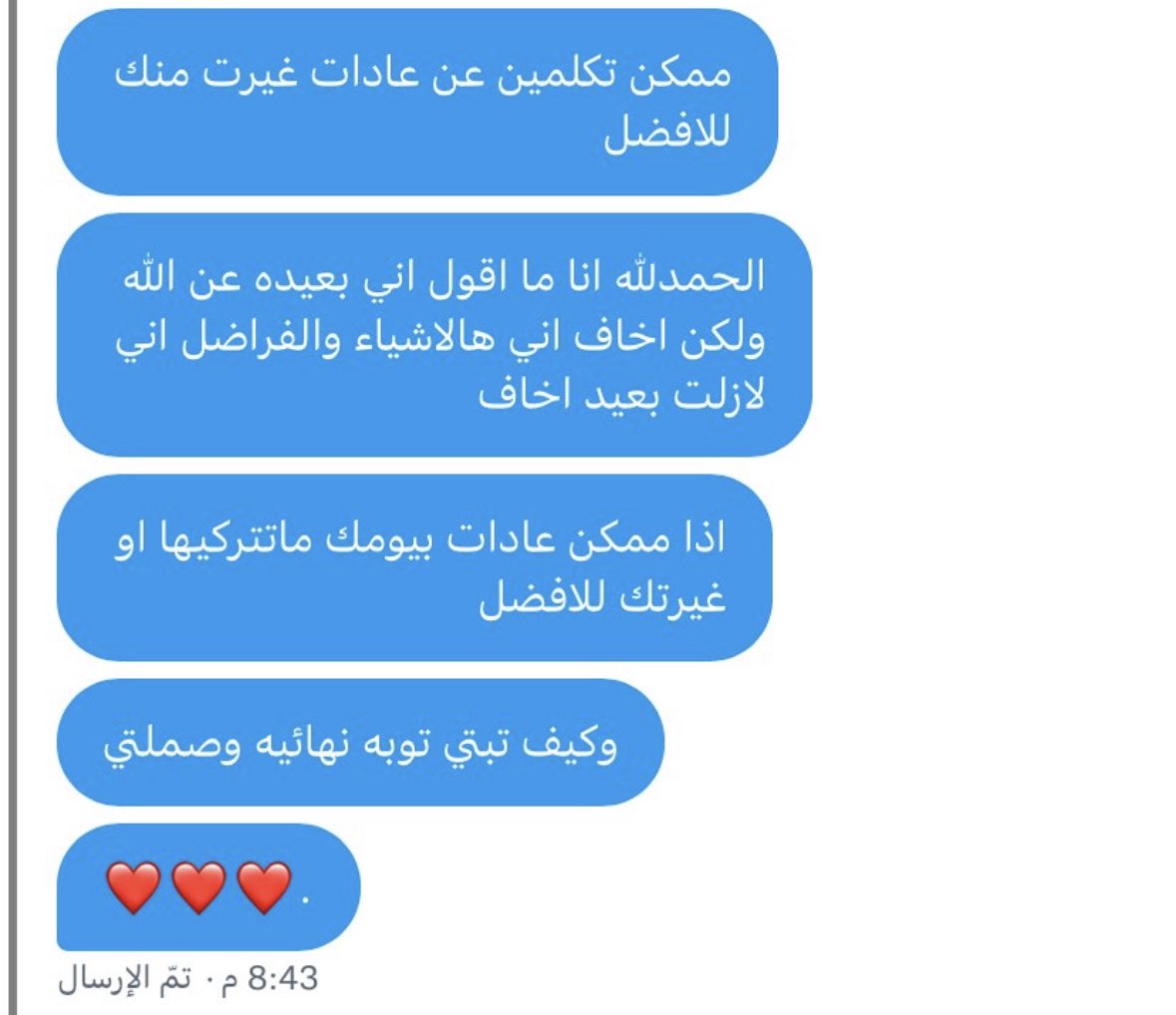 من الاسباب الكبيرة بعد الله في هدايتي القُرآن والصحبة الصَّالِحة والحسابات الدينيه!