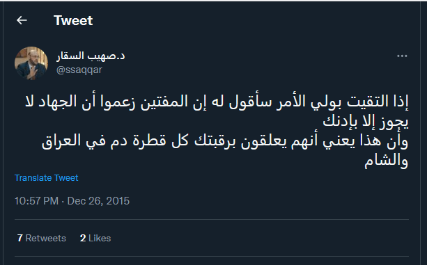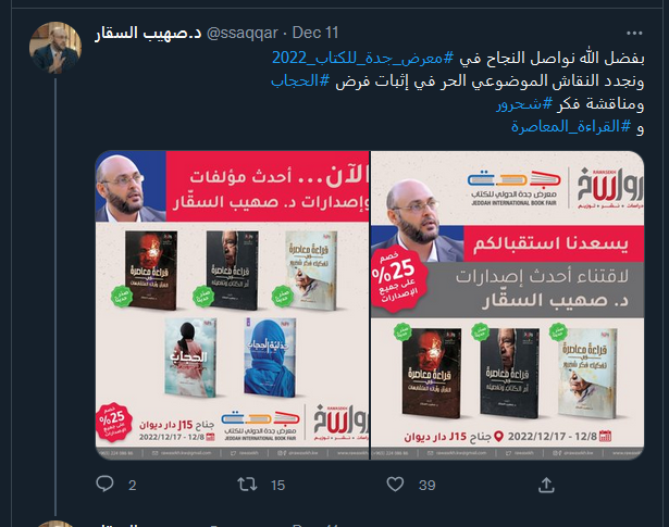وأضيف لسعادتكم @m_alwan هذا المنشور للكاتب الإخونجي صهيب السقار الذي تباع كتبه في معرضكم الحالي