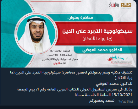 سعادة الرئيس التنفيذي لهيئة الأدب والنشر والترجمة الدكتور @m_alwan هل أتاكم نبأ رواسخ ووسم ؟