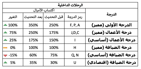 فقد زادت امكانية اكتساب الأميال بالبطاقات الائتمانية بنسبة 59٪ وانخفضت نسبة استبدال الأميال لفئة مقاعد المكافئات المخفضة ب 41٪ للسياحية ،4٪ لرجال الاعمال و زادت بشكل كبير لفئة مكافأة بلس.