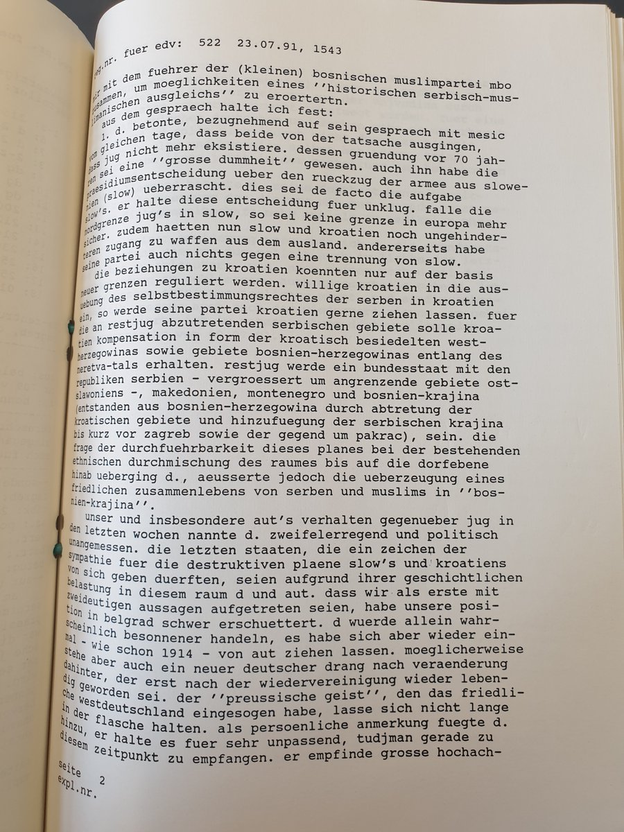 One of the reasons for the meeting is that German policy towards Yugoslavia “has been perceived as anti-Serbian by large sections of the Serbian public for several weeks", the ambassador writes. He seems to consider Drašković as a partner for a possible rapprochement.