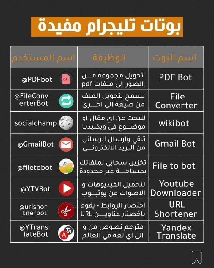✅ وهدي قائمة بأفضل بوتات التليجرام" Telegram Bots" واكثرها استخداما + و لينك لكل القنوات في الآخر