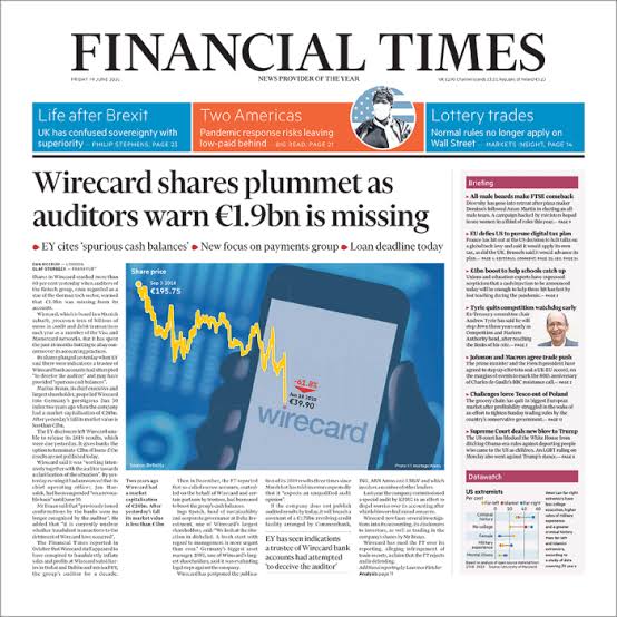 في 18 يونيو رفضت شركة EY للتدقيق المالي التوقيع على حسابات شركة وايركارد لعام 2019؛ حيث لم تستطع التأكد من وجود 1.9 مليار يورو في أي من الحسابات الموثوقة التابعة لأرصدة الشركة وهذه القيمة تمثل ربع رصيد الشركة في هذه العام.