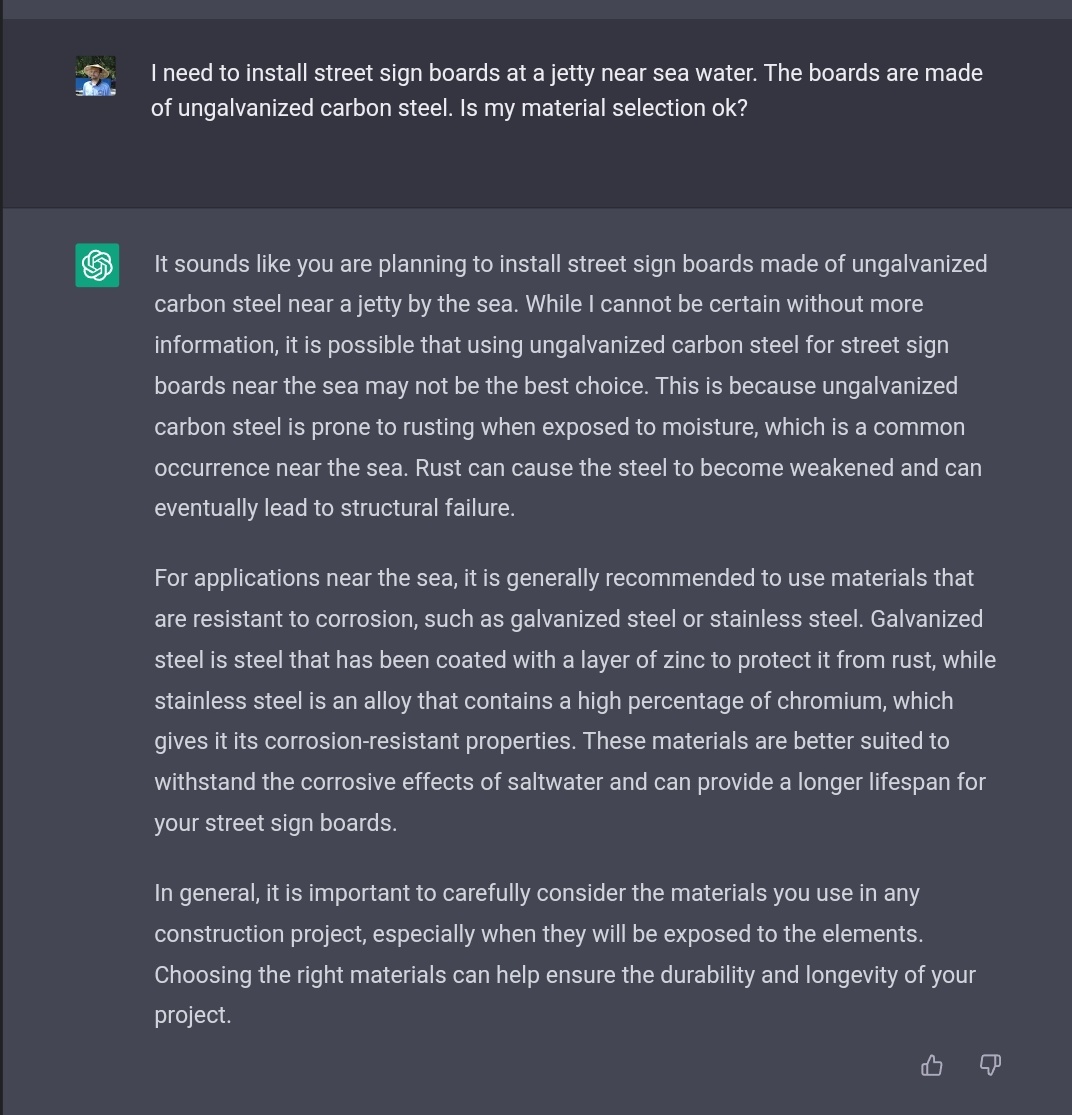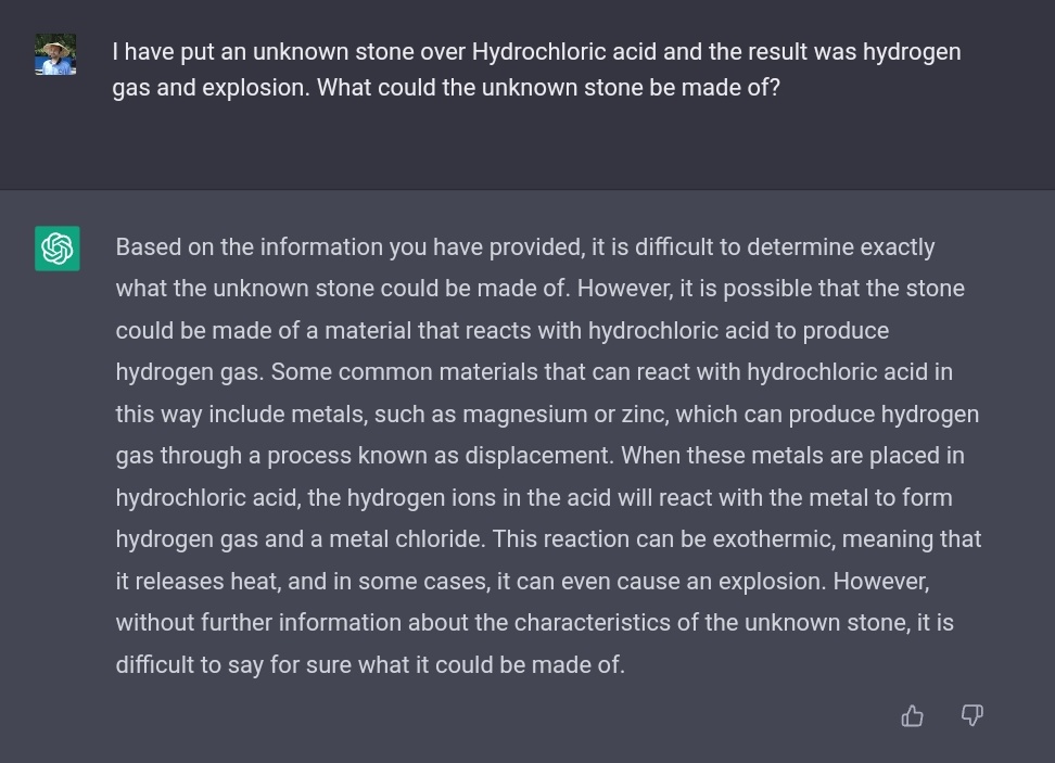 سألت الذكاء الصناعي ChatGPT اللي وفرته @OpenAI عدة أسئلة في الهندسة وشبكات الكمبيوتر وعلم المواد والكيمياء، والأجوبة مبهرة وإن كانت أحياناً غير صحيحة. أكاد أجزم أن ChatGPT راح ياخذ حصة من مستخدمي محرك بحث جوجل لأنه يعطيك أجوبة لحظية لأسئلة معقدة بدل البحث عنها بنفسك. (يتبع)