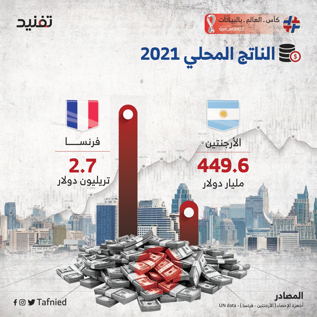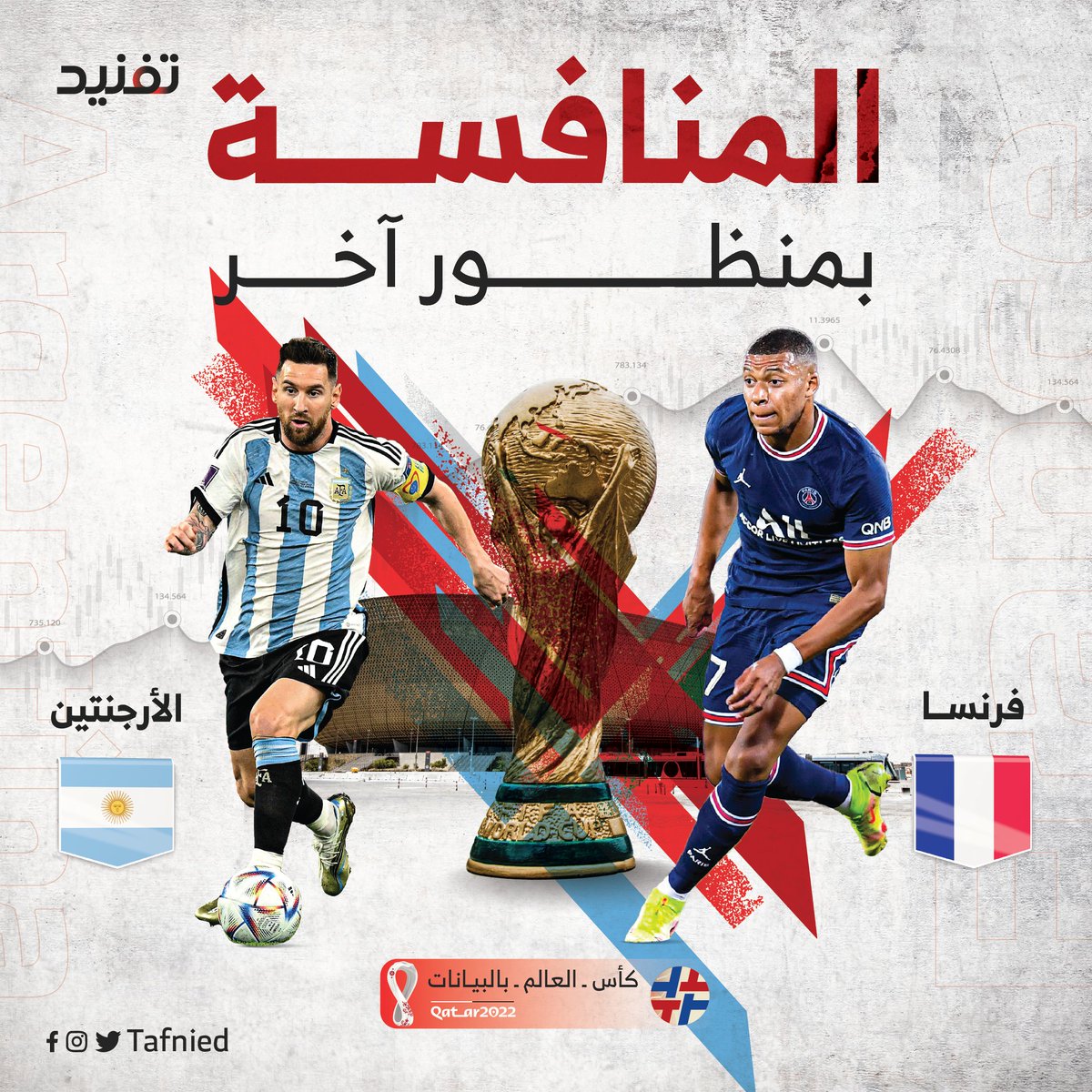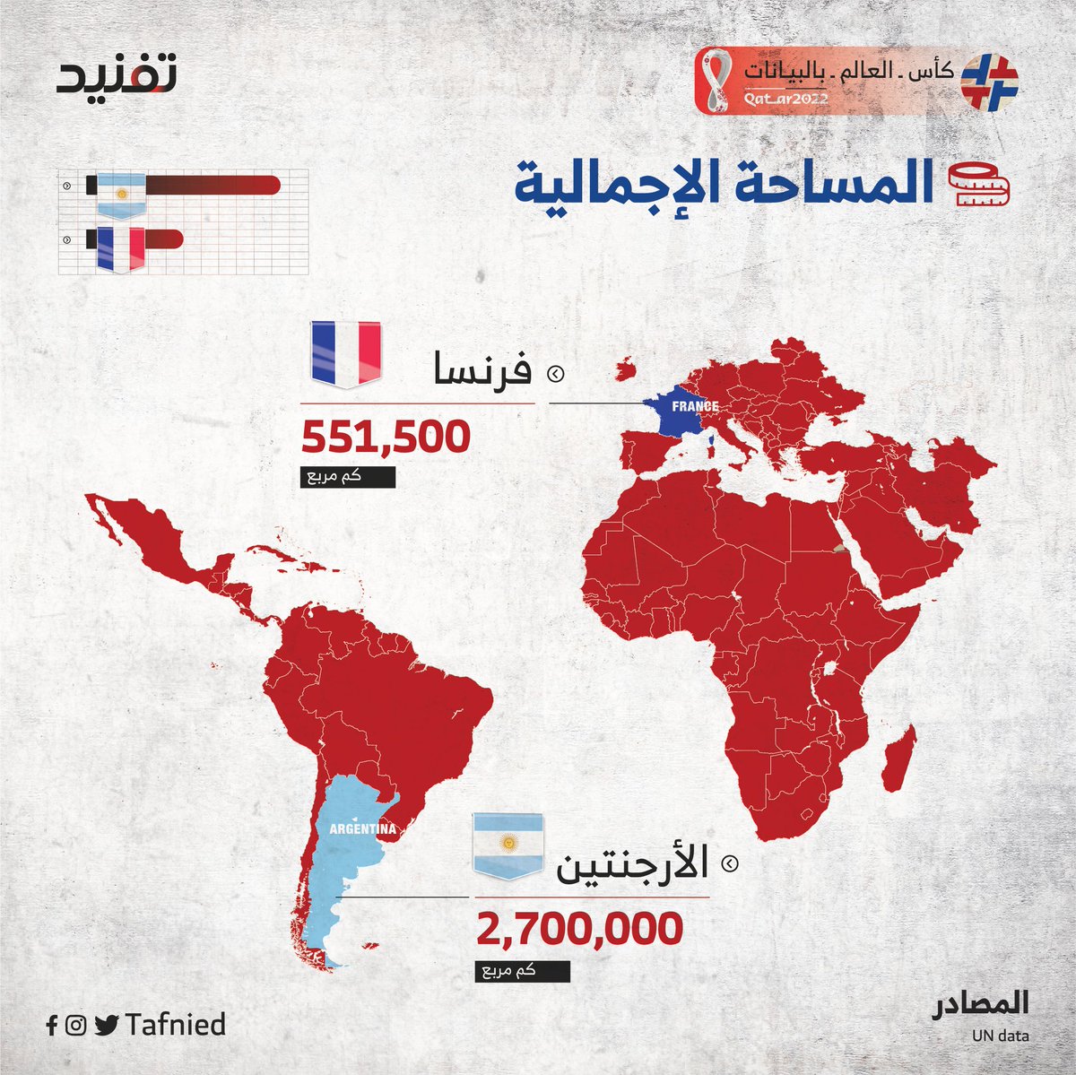 لقاء مرتقب لمباراة #الارجنتين و #فرنسا في نهائي #كأس_العالم_2022 هذه هي نتيجة المقارنة بين البلدين سياسيا وديموغرافيا واقتصاديًا ورياضيًا ومعرفيًا
