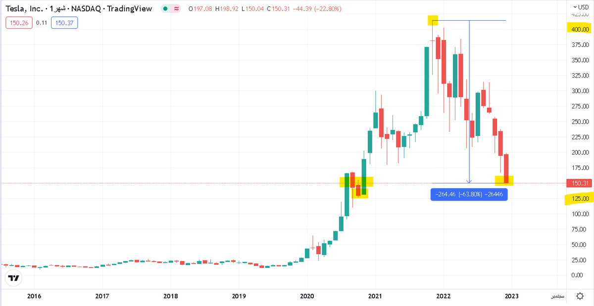 خسر سهم $TSLA حتى الآن 72% منذ بداية العام 2022م.