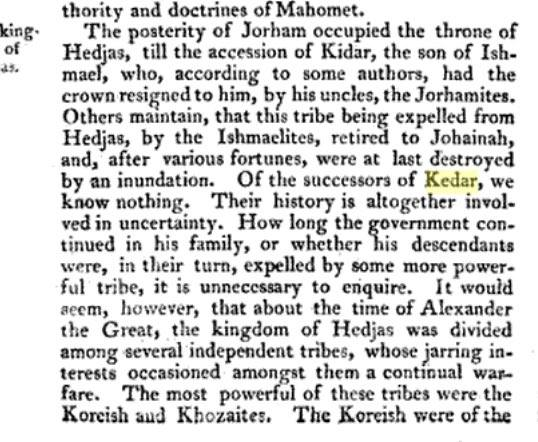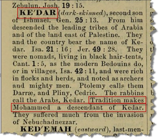 ويرد في التوراة ذكر "قيدار" ونسله، عند الحديث عن "مملكة قيدار" والمقصود بـ