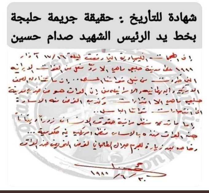 تمتلك المخابرات c.i.a الأمريكية صورا جوية تؤكد وجود أعداد كبيرة من الجيش الإيراني والبيشمركة الكردية التابعين لجلال الطالباني وهم يتحركون داخل مدينة حلبجة قبل قصفها!