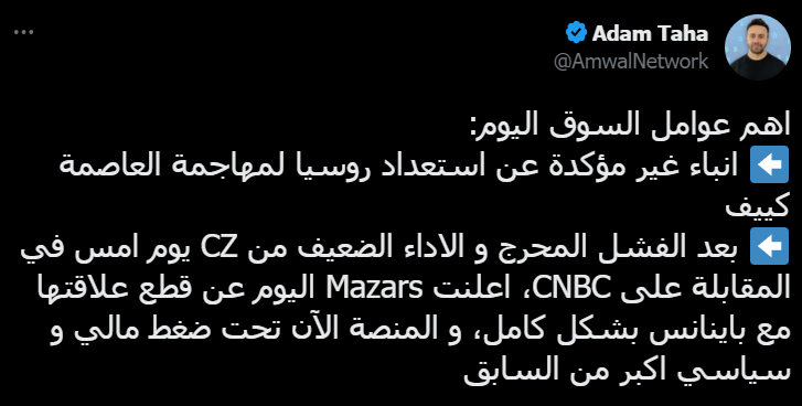 بشكل شخصي أعتقد أن كلامه صحيح لسبب بسيط وهو أنه مع كل الحملات المدفوعة لتشويه #Binance لا يوجد شخص واحد يتحدث عن ديون على الشركة أو أموال أقرضتها الشركة ثم خسرتها، ولا يوجد أي دليل ظهر حتى الآن على ذلك، وطالما أنه لا يوجد دخان فليس هناك نار.
