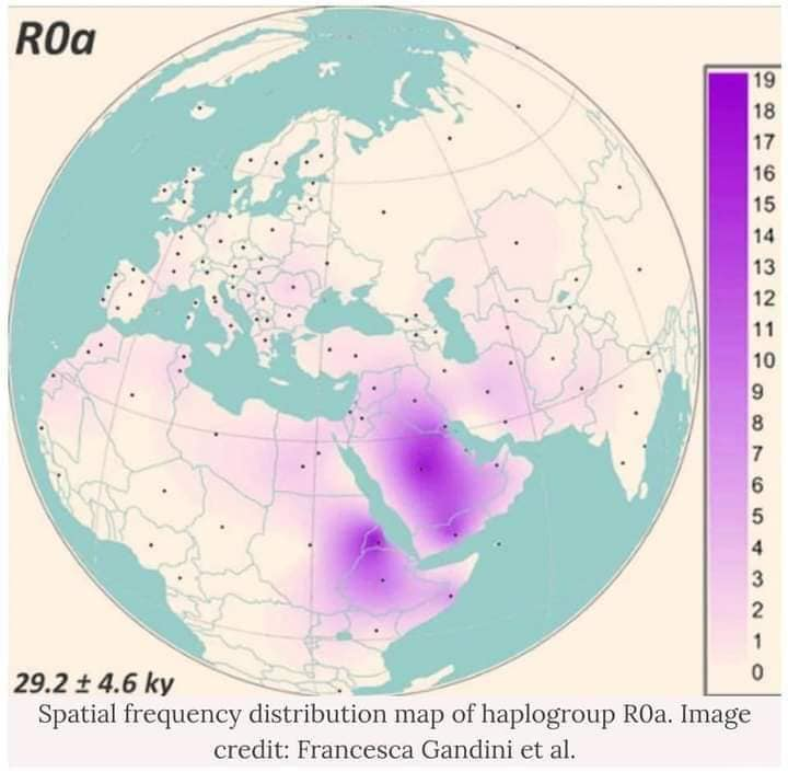 دَرسَت الدكتورة غانديني والعلماء المشاركون مجموعة هابلوغروب "R0a" ، وهي أكثر شيوعًا بشَكل فريد في شبه الجزيرة العربية والقرن الأفريقي ،