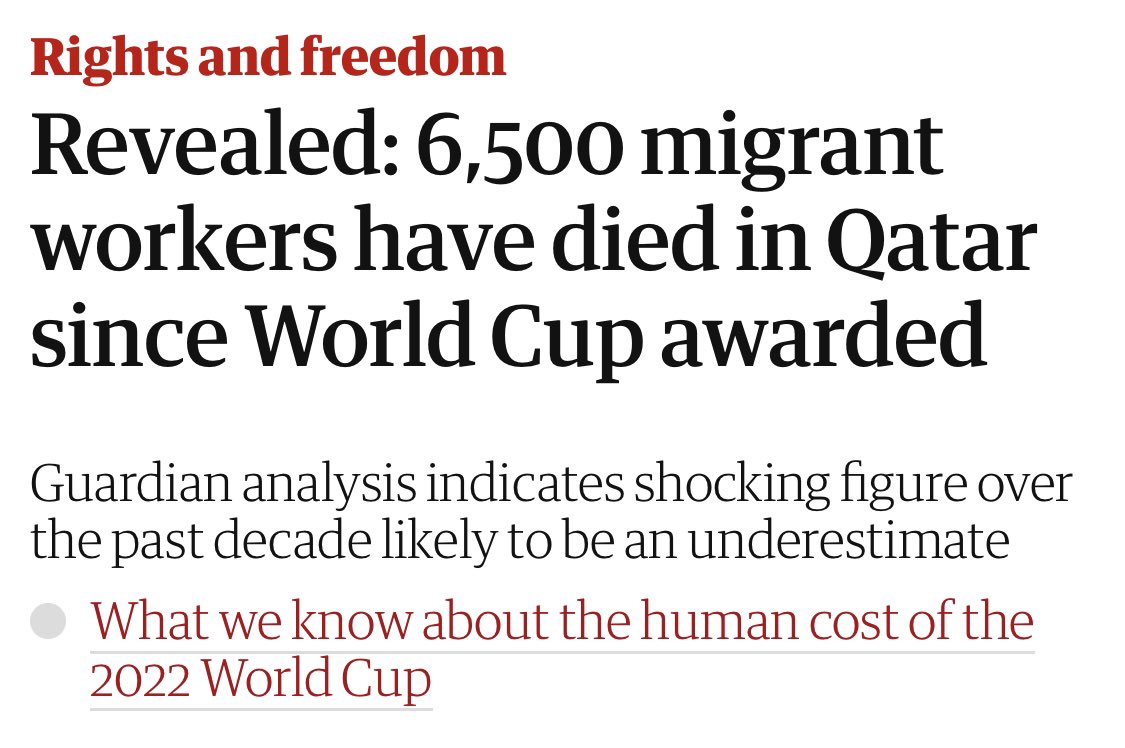 In his 15 min read piece, Nick failed to mention the misleading Guardian headline of the 6500 workers death which was the backbone of the recent unanimous media attack on Qatar. Even though Nick himself participated in it! Every attack on Qatar after Jan21 cited that number!
