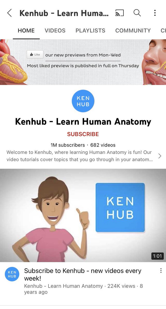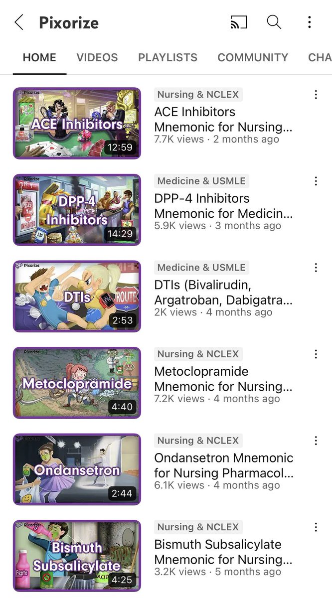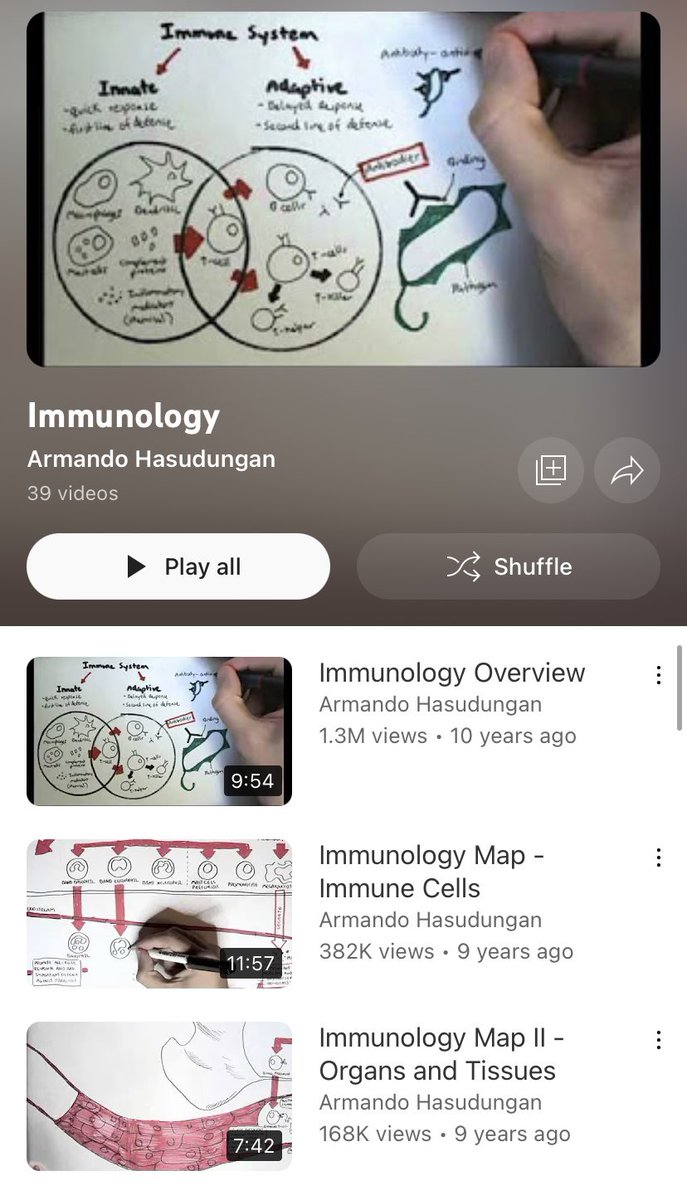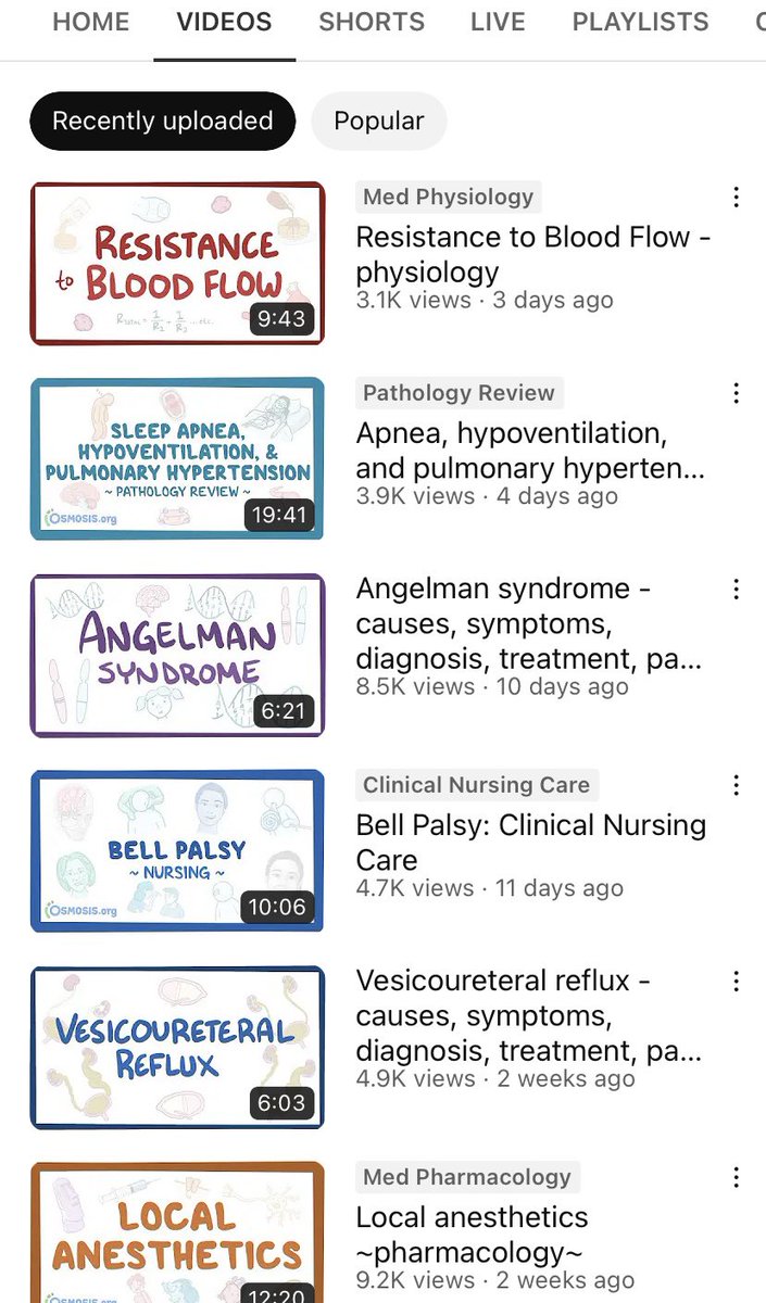 راح تلاقي في هذه القناة شرح عن طريق الصور والرسوم؛ كثير ناس تحفظ بشكل اسهل لما تشوف المعلومة على شكل رسمة (نفس فكرة سكيتشي)، وايضا فيه شروحات الى اختبار الرخصة الامريكي للطب، فيه شروحات للتمريض ايضا 👍🏻👍🏻