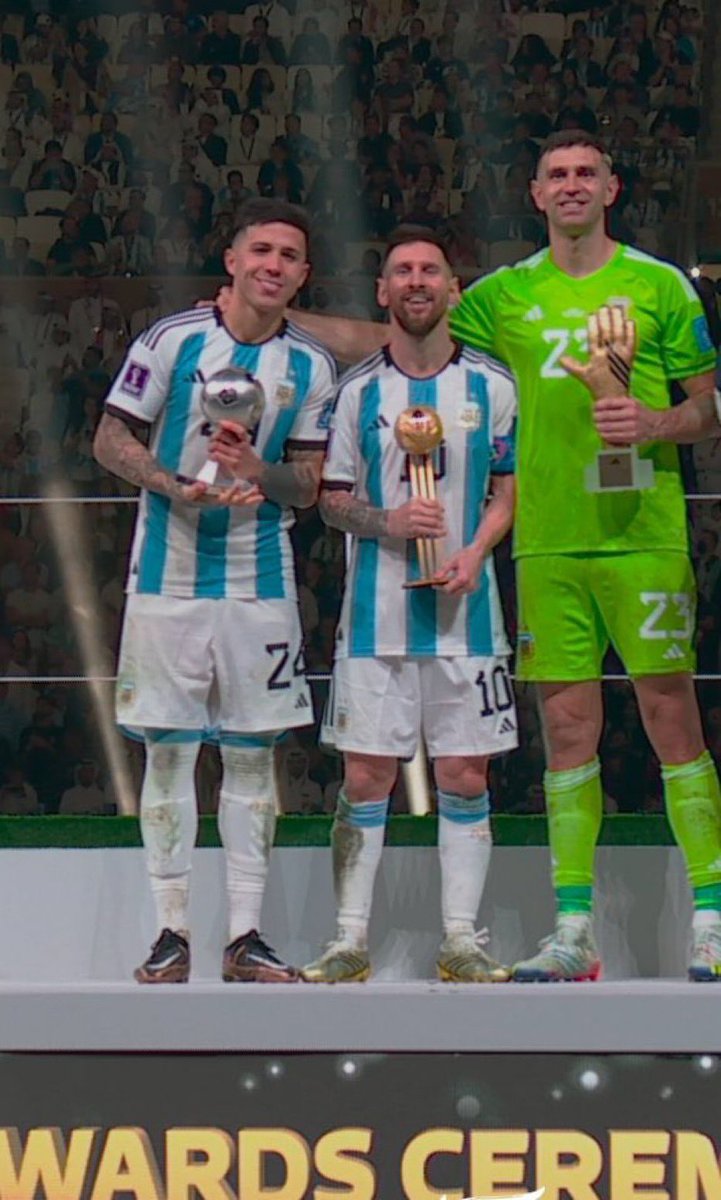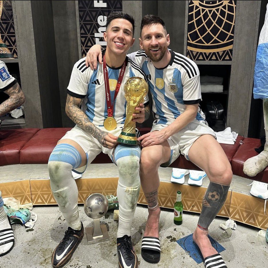 اليوم ميسي توج بكأس العالم رفقة انزو فيرنانديز وحصل ميسي على جائزة افضل لاعب في كأس العالم وانزو حصل على جائزة افضل لاعب شاب في كأس العالم .