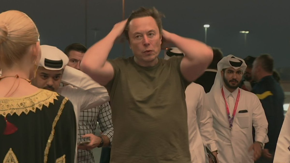 وظهر إيلون ماسك بإطلالة شعر غير مهندم، في حين بدأ في التغريد على حسابه على منصة «تويتر»، بدأها بتغريدة يعلن فيها تواجده بالمباراة النهائية لكأس العالم قائلاً: «في كأس العالم الآن».
