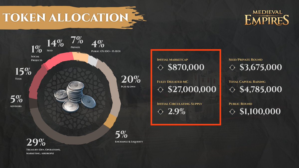 Token jest związany z grą Medieval Empires, której jeszcze nie ma (o tym później). Oto kilka czerwonych światełek, które zapaliły mi się podczas wyszukiwania informacji na temat tego projektu, i które skutecznie odstraszyły mnie od dalszego zgłębiania tematu.